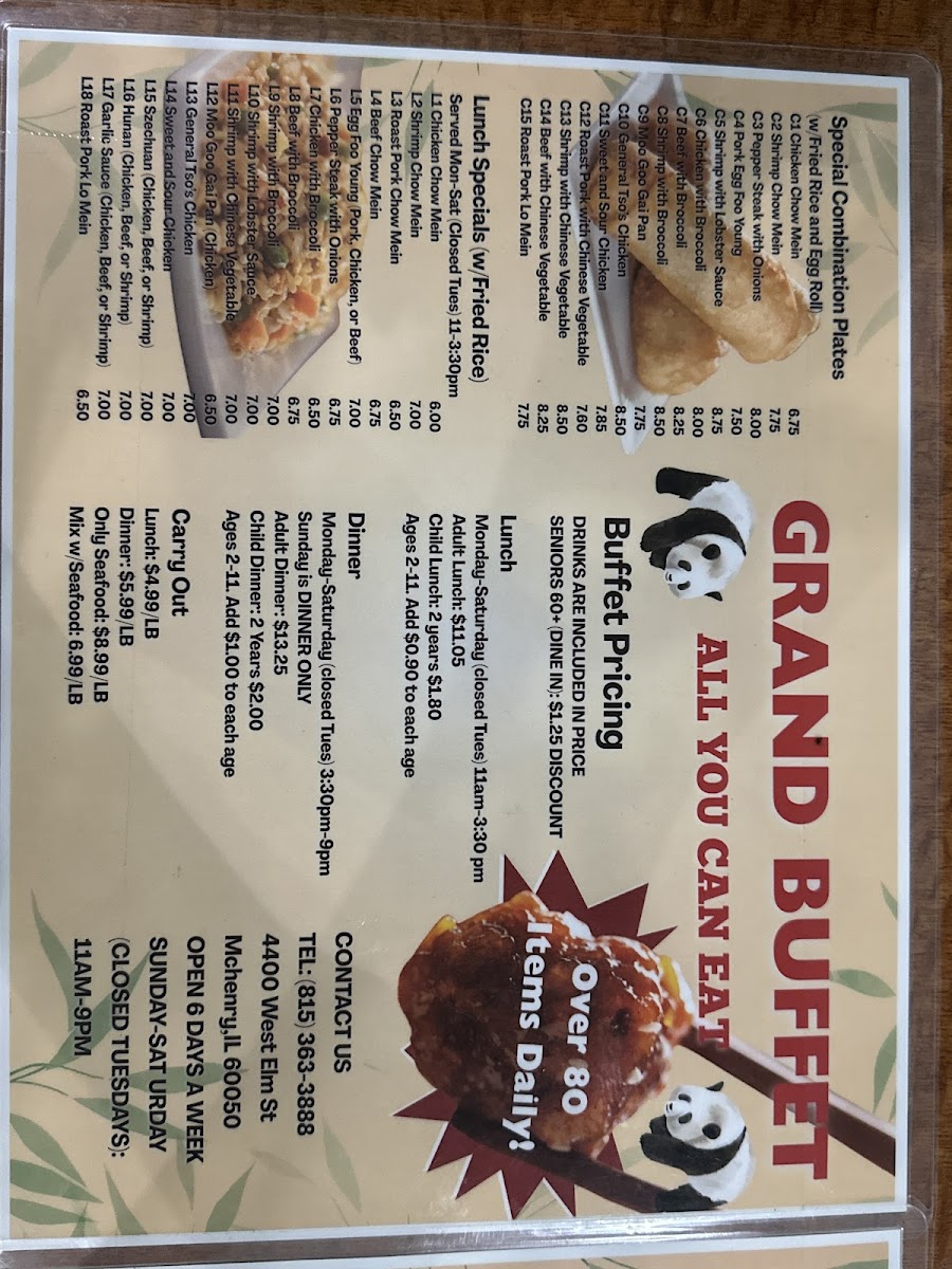 The menu at Grand Buffet offers a straightforward and inviting selection that suits a casual dining experience. It blends comforting American favorites with a variety of Chinese dishes, presenting options that feel familiar yet satisfying. Whether stopping by for a quick weekday lunch or gathering with family on the weekend, the diverse offerings accommodate a range of appetites and preferences.